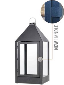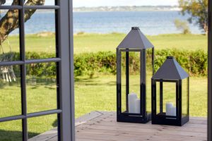 Solid lykt som tåler å stå ute, fra danske A2 Living. Denne måler L32 x W32 x H70 cm, lukkes med magnet. Lykten er laget av kraftig galvanisert plate (0,8 mm) og glasset har en tykkelse på 3 mm. Hengsler, nagler og håndtak er i rustfritt stål.