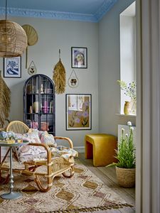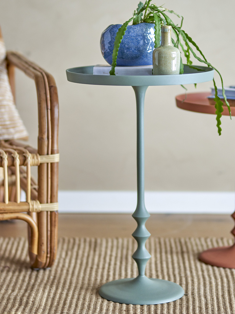 Rundt sidebord av metall fra Bloomingville, 37 cm i diameter, 57 cm høyt. Laget av aluminium.
