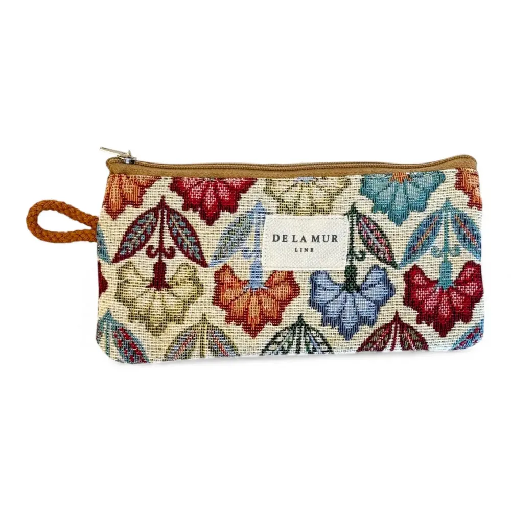 Brilleetur/liten pung sydd av bomull/polyester i Spania for De La Mur. 17x8 cm.