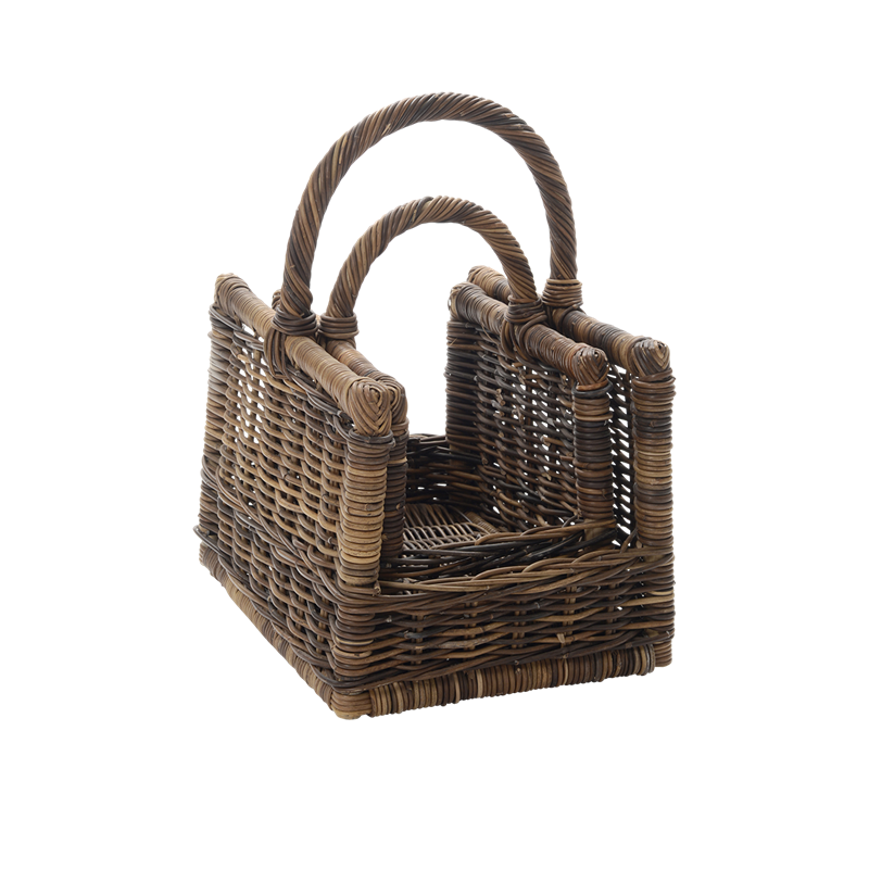 Vedkurv fra Bruka Design, laget av rotting. Kommer i to størrelser, mål kommer.