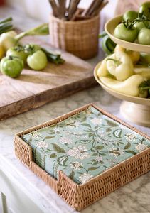 Serviettkurv laget av rattan. 22x22 cm stor, passer til middagsstørrelse.