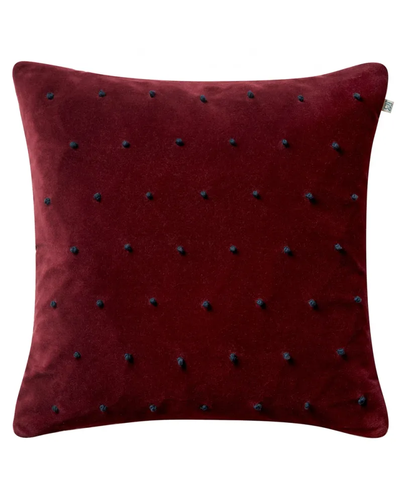 Putetrekk av bomullsvelour med broderi på forsiden. Bakside av samme velour som forsiden, kan håndvaskes. 50 x 50 cm, leveres uten innleggspute.