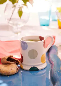 Krus fra Emma Bridgewater, med polkadotter i fine farger. Rommer 315 ml., 9,3 x 12,1 cm stor. Produsert i Storbritannia, kan vaskes i oppvaskmaskin men ikke brukes i microbølgeovn.