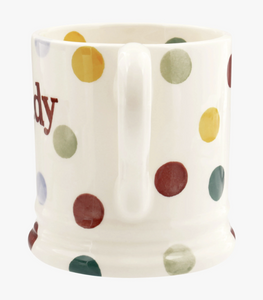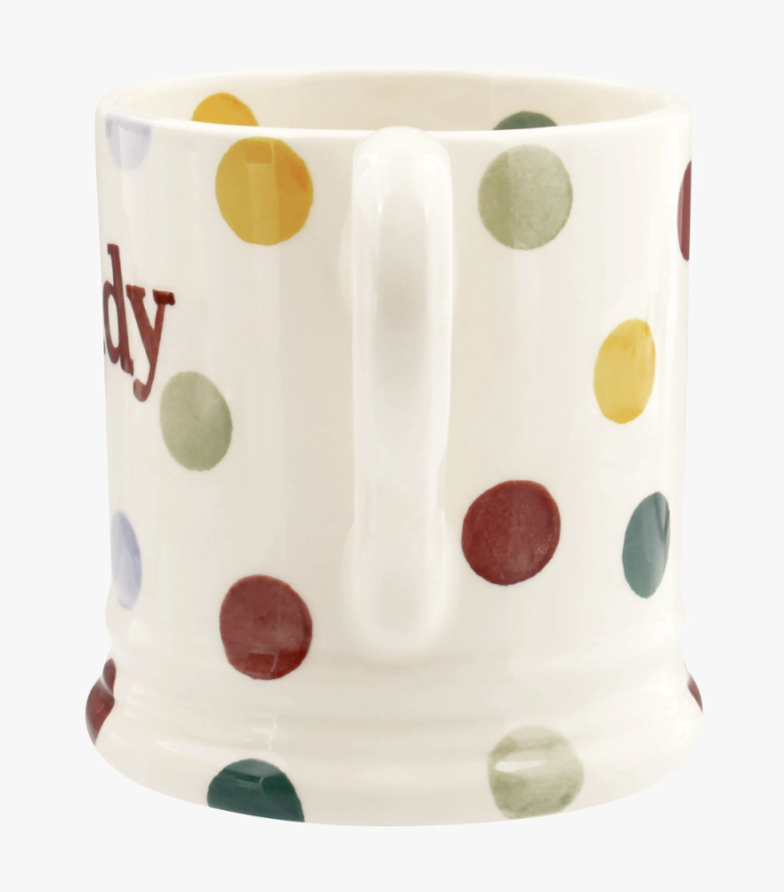 Enten det er en pappa eller en daddy som fortjener et krus, her et perfekt et fra Emma Bridgewater, med teksten Daddy og polkadotter i fine farger. Rommer 315 ml., 9,3 x 12,1 cm stor. Produsert i Storbritannia, kan vaskes i oppvaskmaskin men ikke brukes i microbølgeovn.
