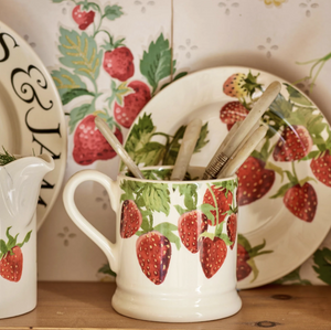 Klassisk krus med jordbær på, rommer 315 ml., 9,3 x 12,1 cm stor. Produsert i Storbritannia, kan vaskes i oppvaskmaskin men ikke brukes i microbølgeovn.