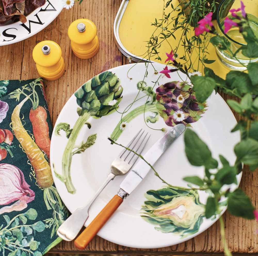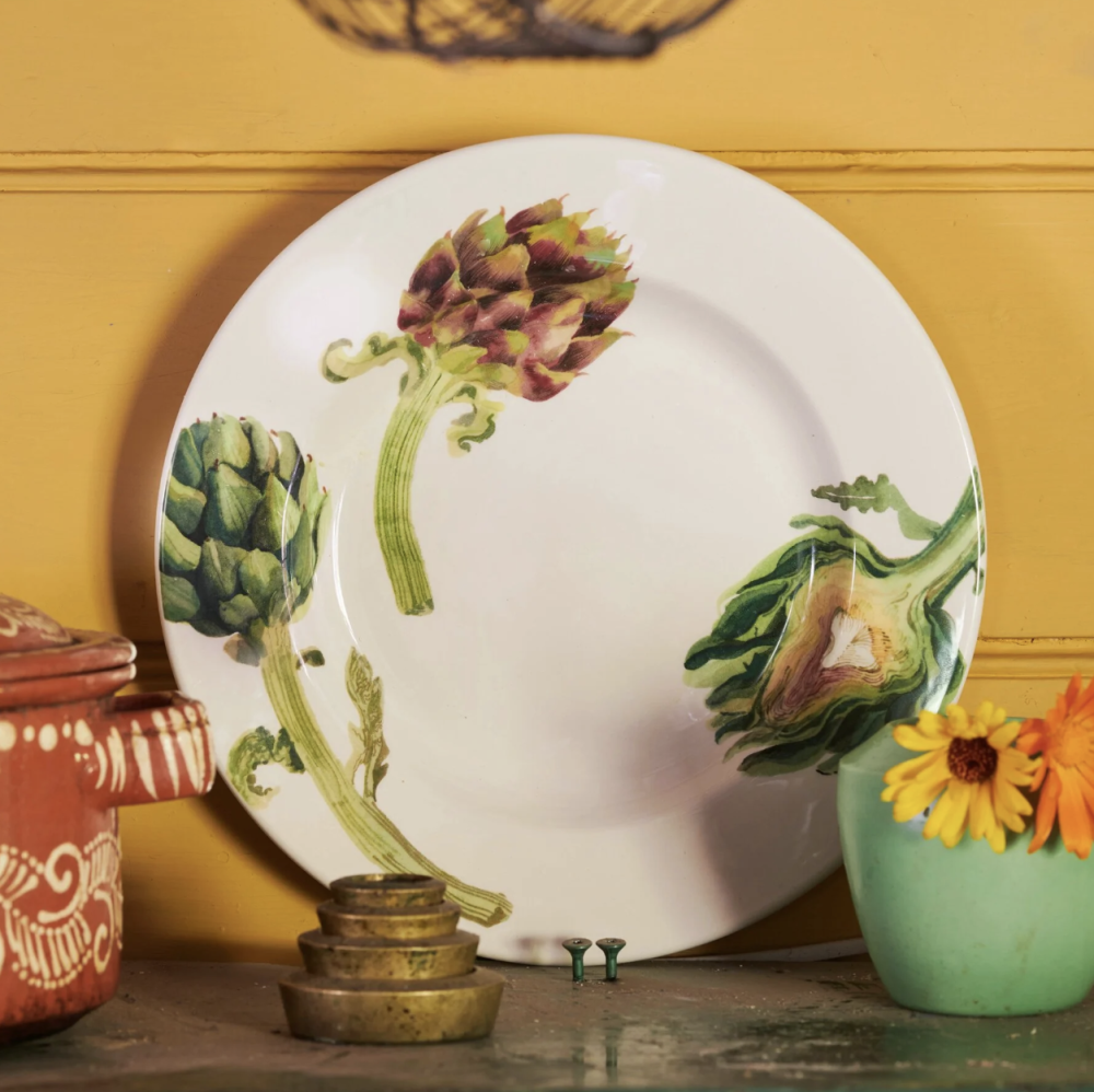 Tallerken fra Emma Bridgewater, med artiskokker på. 27 cm stor. Produsert i Storbritannia, kan vaskes i oppvaskmaskin men ikke brukes i microbølgeovn.
