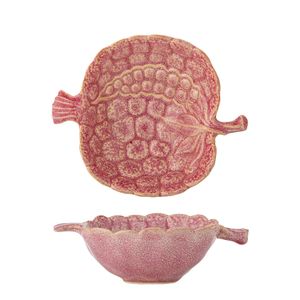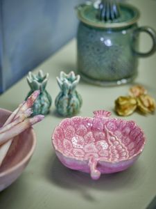 Keramikkskål med spennende glasur i rosa fra Bloomingville, formet som et granateple. L17xH5xW14 cm, kan brukes til mat og vaskes i maskin