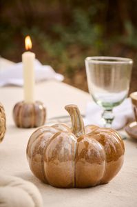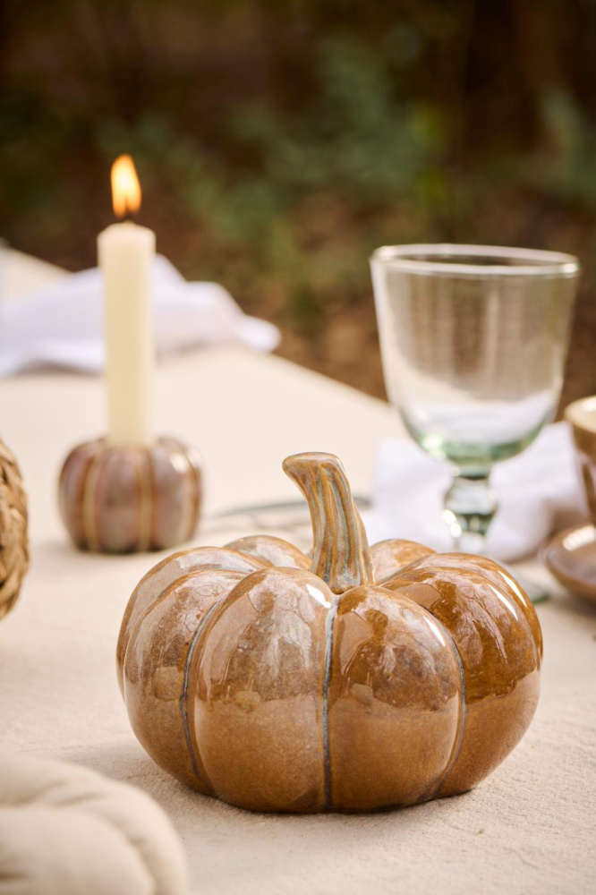 Dekorativt gresskar av keramikk fra Ib Laursen med fin glasur, 11 x 15 cm.