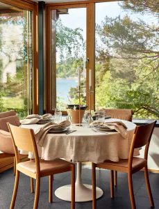 Rund duk av lin fra Himla, 160 cm i diameter. Vaskes på 60 grader.