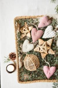Julekule laget av rattan, 14 x 15 cm.