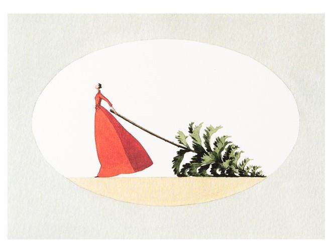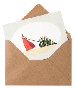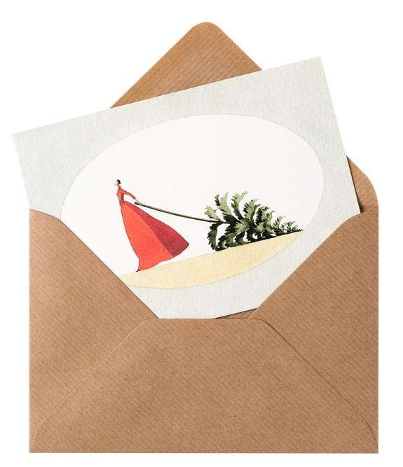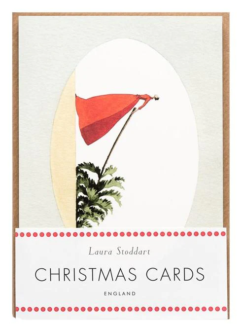 Sett med 10 doble kort med julemotiv av Laura Stoddart, måler 127mm x 177mm, trykket i England på FSC-sertifisert papir med konvolutter av kraftpapir.
