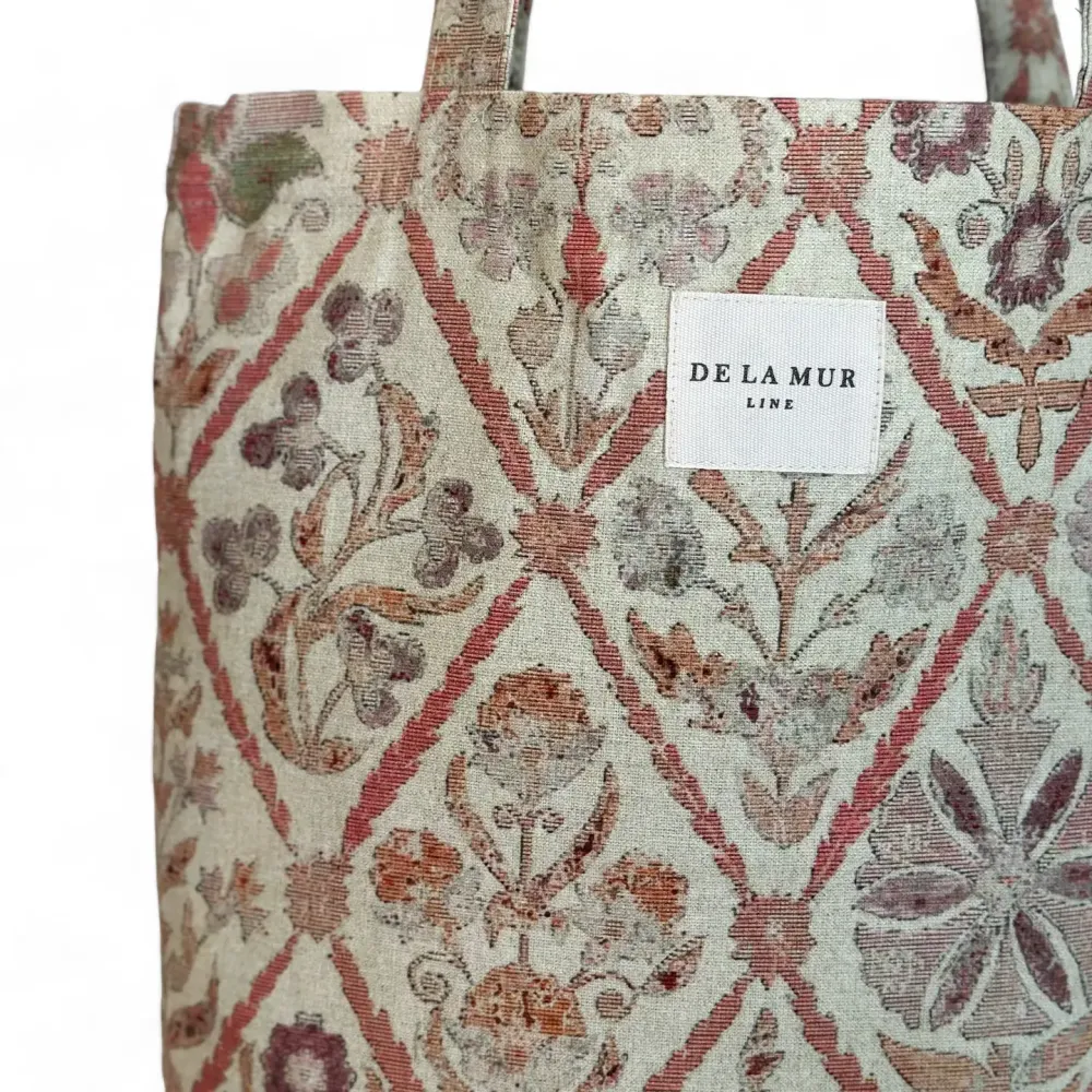 Nett/veske fra De La Mur, sydd i Spania av bomull/polyester. 36x39 cm pluss hanker.