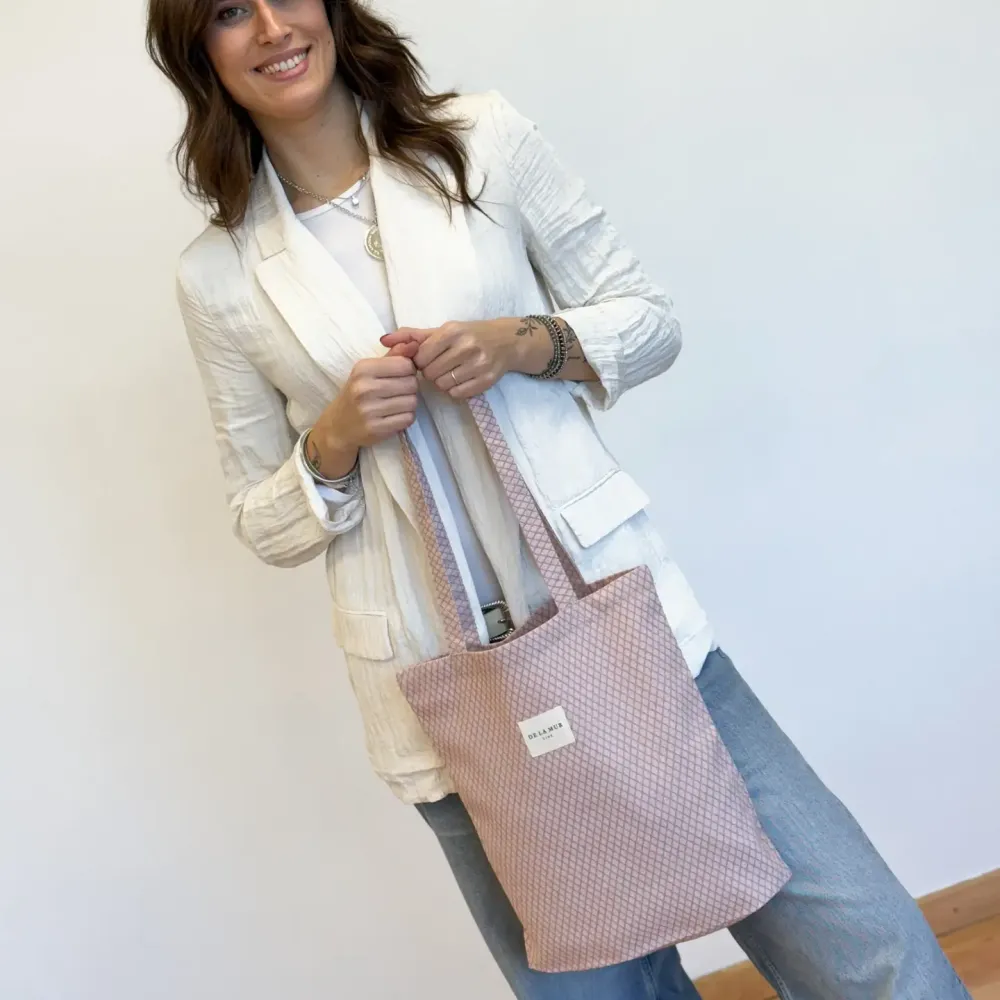 Nett/veske fra De La Mur, sydd i Spania av bomull/polyester. 36x39 cm pluss hanker.