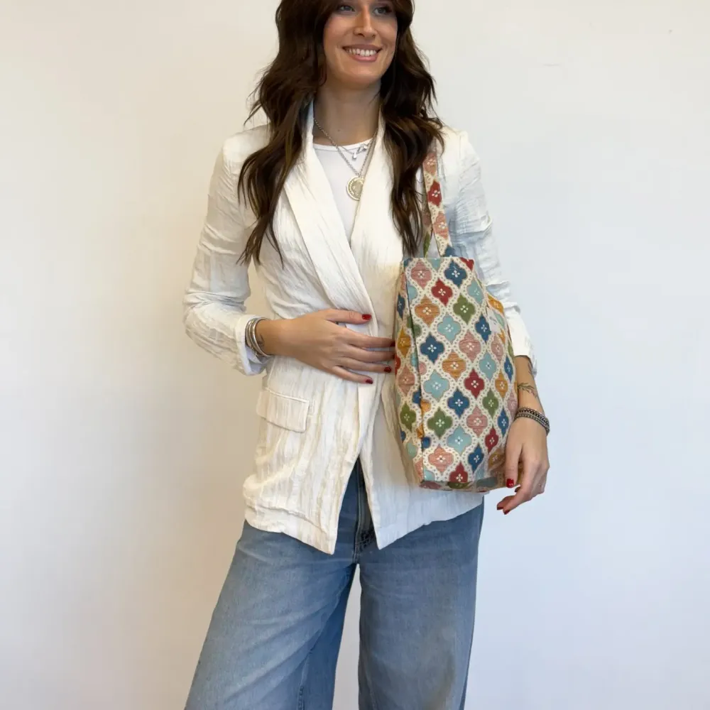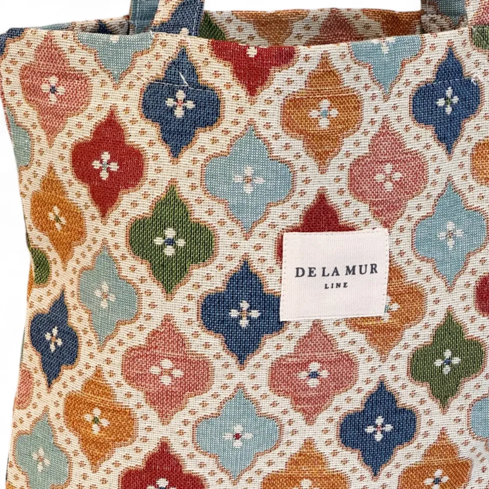 Nett/veske fra De La Mur, sydd i Spania av bomull/polyester. 36x39 cm pluss hanker.