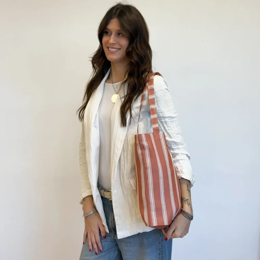Nett/veske fra De La Mur, sydd i Spania av bomull/polyester. 36x39 cm pluss hanker.