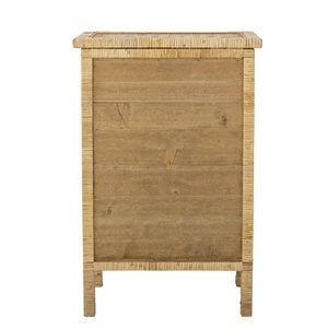 Kommode med to skuffer og et sett skapdører fra Bloomingville. Rammeverk av furu, dekorert med rattan, 45 x 67 x 36 cm.