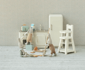 Brødboks med skiver, fjøl og kniv fra Maileg, 4 x 8 x 4,5 cm.