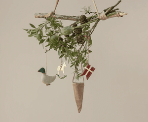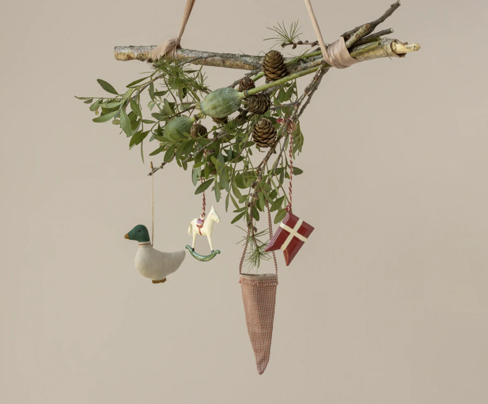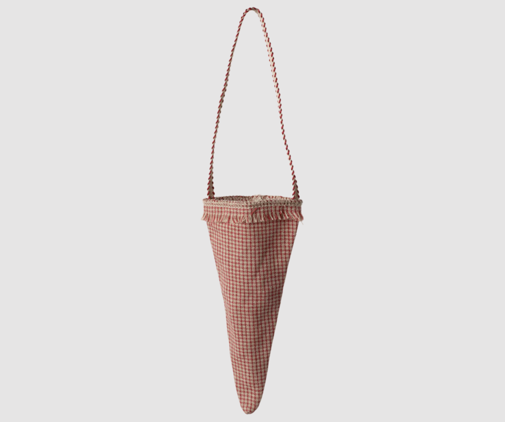 Søtt kremmerhus av tekstil,  5,5 x 11 cm.