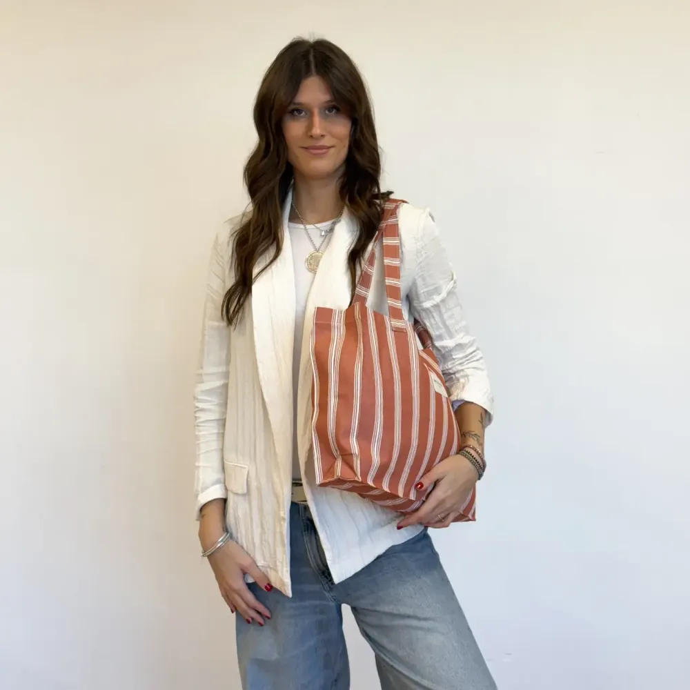 Nett/veske fra De La Mur, sydd i Spania av bomull/polyester. 51x34 cm pluss hanker.