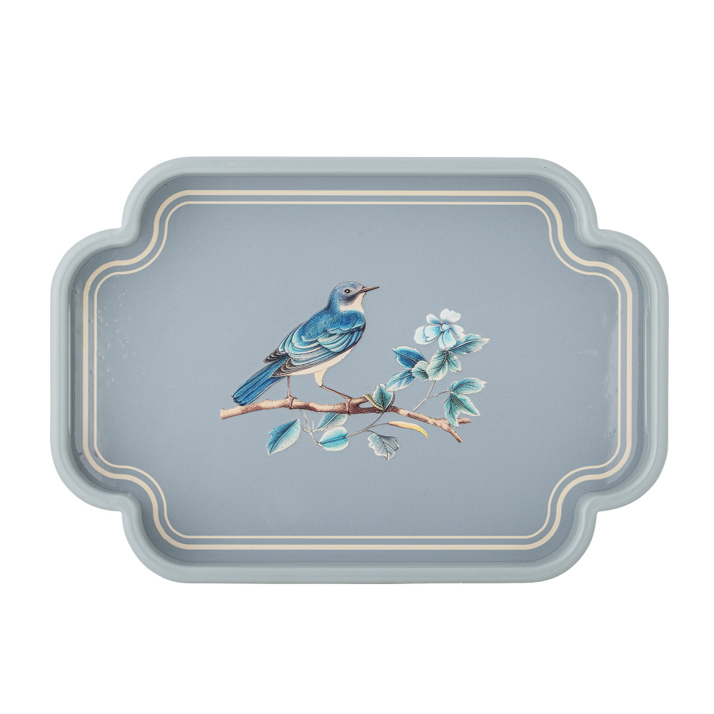 Dekorativt brett fra Bloomingville, blank lakk med fugledekor. 35xH5x24 cm. Kun til dekor, ikke til mat.