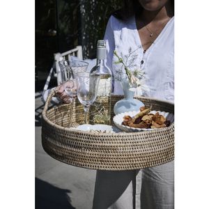 Stort, stødig kurvbrett flettet av rattan i Myanmar, 47 x H15 cm.