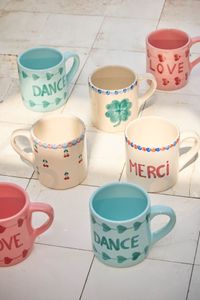 Rosa krus fat av håndmalt keramikk fra Rice, 9x5 x 8,5 cm.