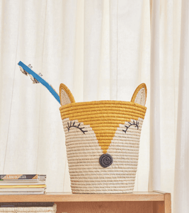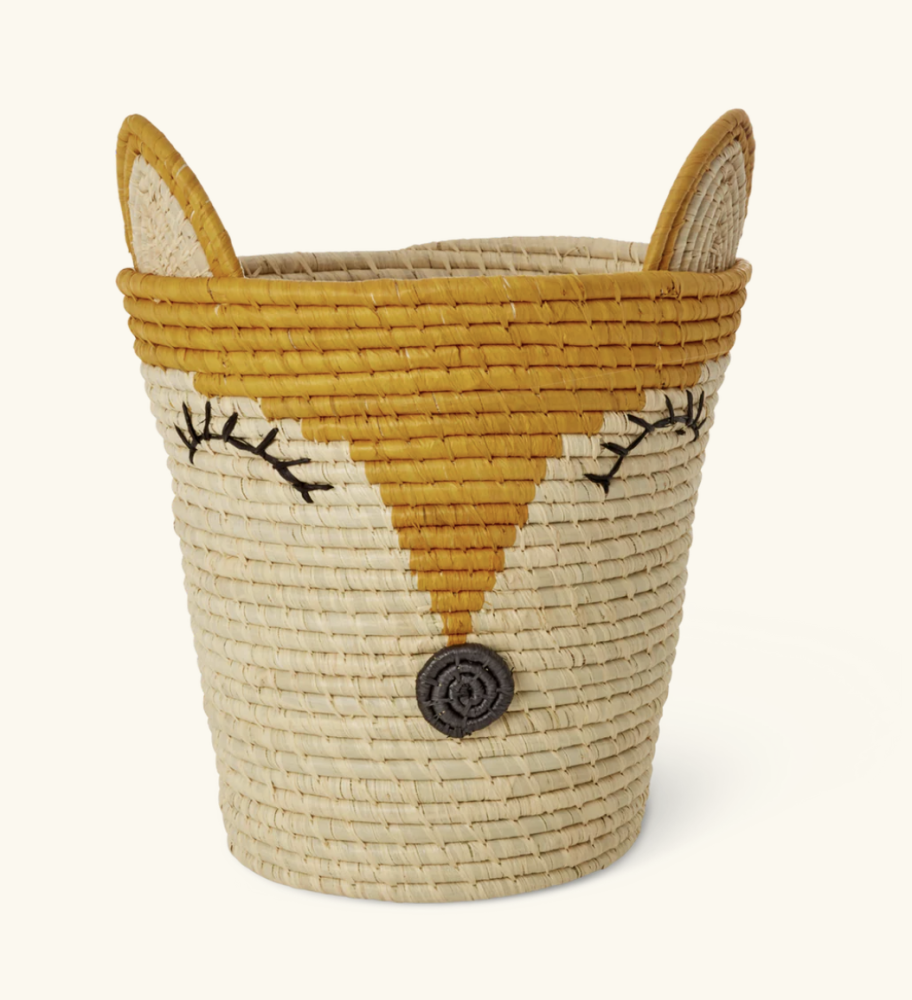 Søt kurv fra Rice, laget av naturmaterialet raffia, med en lur rev på. Måler 30 x 20 cm.