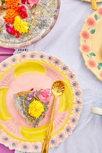 Sett med fire søte latteskjeer av forgylt stål. 19 cm, kan vaskes i oppvaskmaskin men vil holde seg fine lenger om du vasker for hånd.