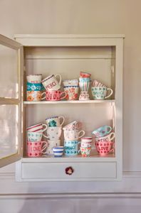 Tekopp med hank av håndmalt keramikk fra Rice, 10,5 x 7,5 cm.
