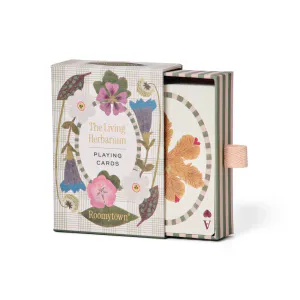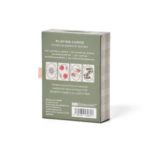 Kortstokk i pen eske, dekorert med blomster fra et herbarium fra 1733. En nydelig gave!