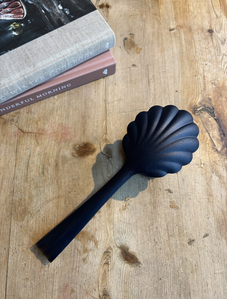 Søt salatklype/tang av metall fra Roger Orfèvre, 21 cm. Laget av rustfritt stål som er lakkert i farge, men tåler ikke oppvaskmaskin. Produsert i Frankrike.