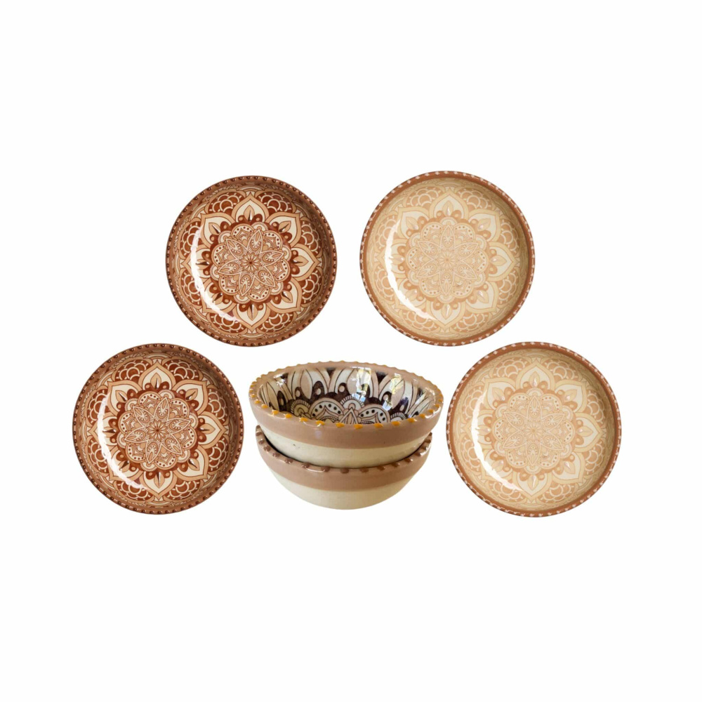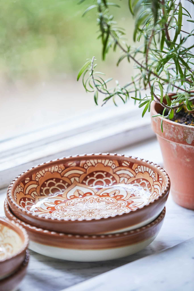 Liten skål i en ny serie med spansk keramikk fra Spliid, 7 cm i diameter så en typisk tilbehørskål. Kan selvsagt brukes til pynt eller til et telys eller til smykker også. Håndmalte detaljer, kan vaskes i maskin og brukes i ovn og mikro.