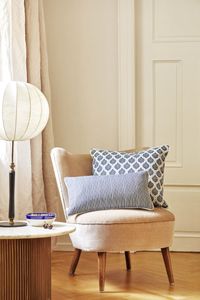 Putetrekk av 85% bomull og 15% lin, måler 50 x 30 cm. Botanisk motiv på den ene siden, smale striper på den andre. Leveres uten innleggspute, men finner du hos oss om du trenger det.