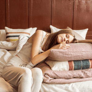 Putetrekk fra Libeco av 100 % lin som er vasket myk, 65 x 65 cm stort. Fine, vevde striper som kan brukes både som base og akksent, både i sofa og seng. Vaskes på 40°C, innleggspute følger ikke med, men det har vi også.