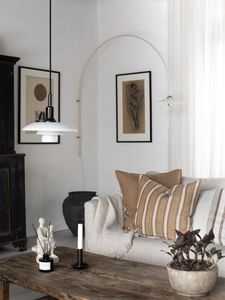 Putetrekk i ren lin fra Tell me more, med vevde striper, produsert i India. 50x50 cm stor, gliselåslukning.