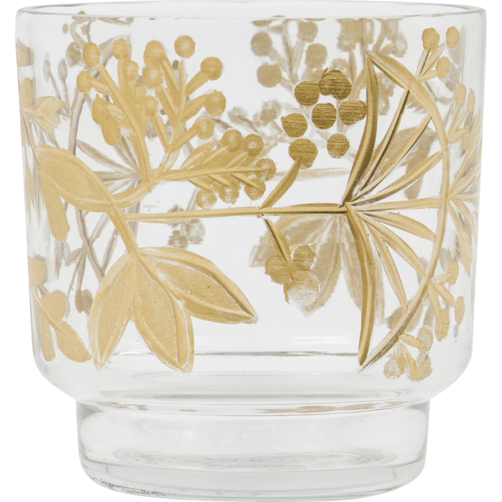 Telysholder fra House Doctor av glas, med dekor i gull. 7x7 cm, unngå vask med vann.
