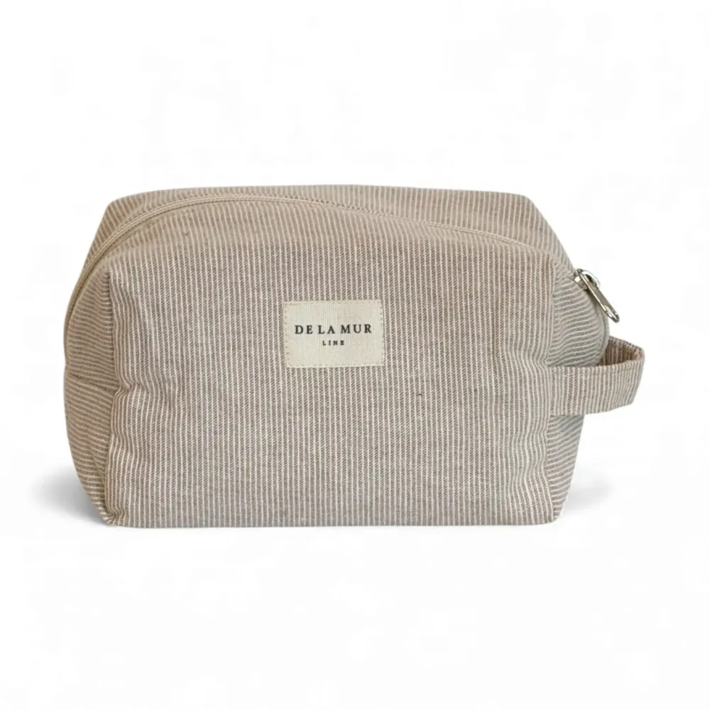 Toalettmappe sydd av bomull/polyester i Spania for De La Mur. 16x13x9 cm.