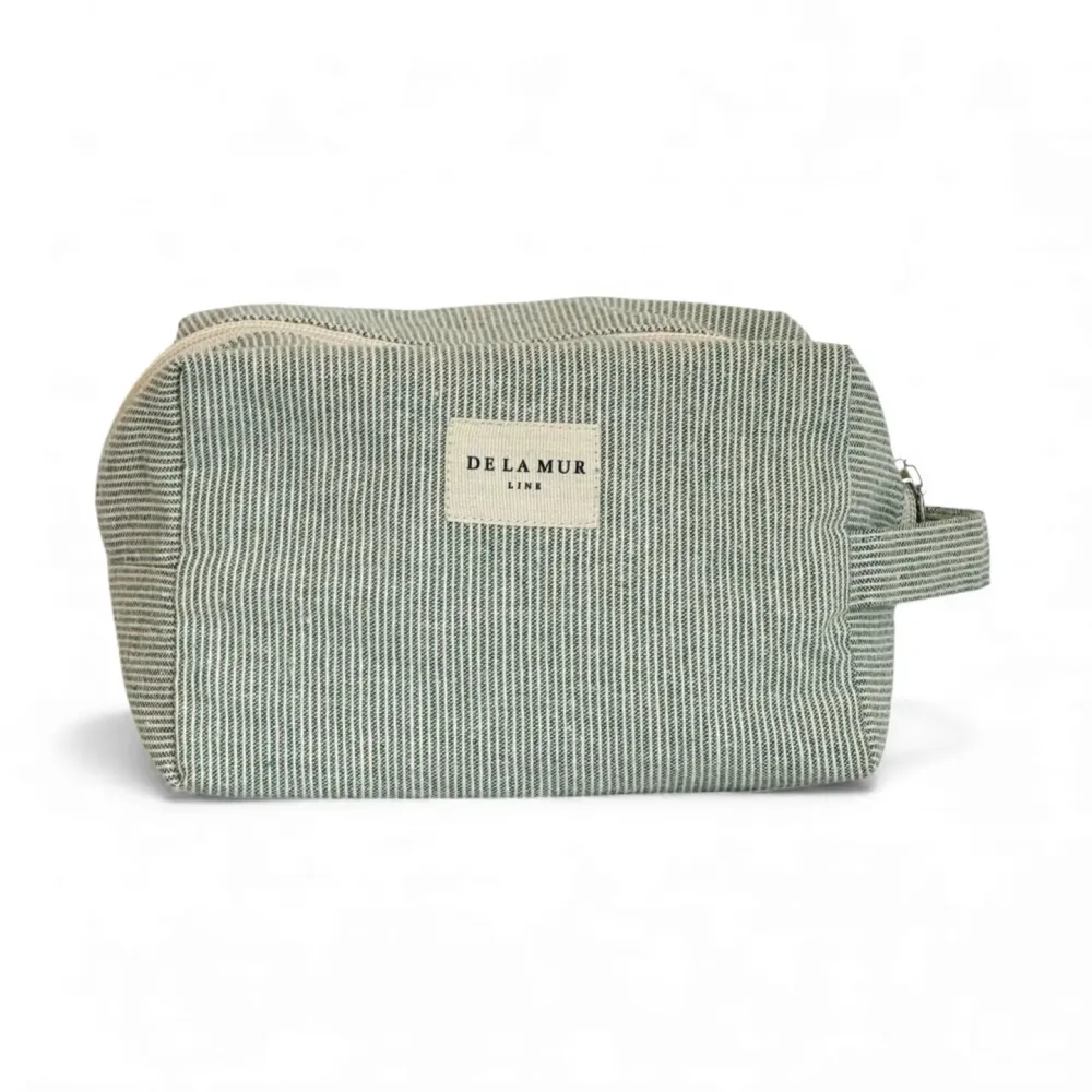 Toalettmappe sydd av bomull/polyester i Spania for De La Mur. 16x13x9 cm.